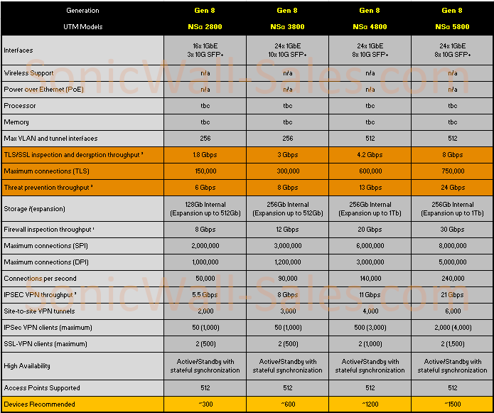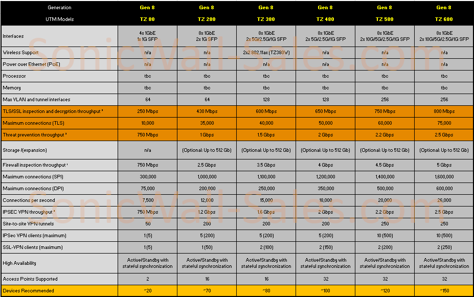 Overview of all the current TZ & NSA SonicWall UTM appliances